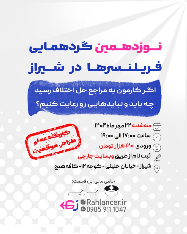 تا حالا فکر کردی وقتی یه فریلنسر تو شرایط شکایت قرار میگیره، چطور باید با مدارک، قرارداد و رفتار حرفهای از حق خودش دفاع کنه؟ 😳این کارگاه یه فرصت بینظیر سه ساعتهه تا بدون استرس، وسط یک شب...